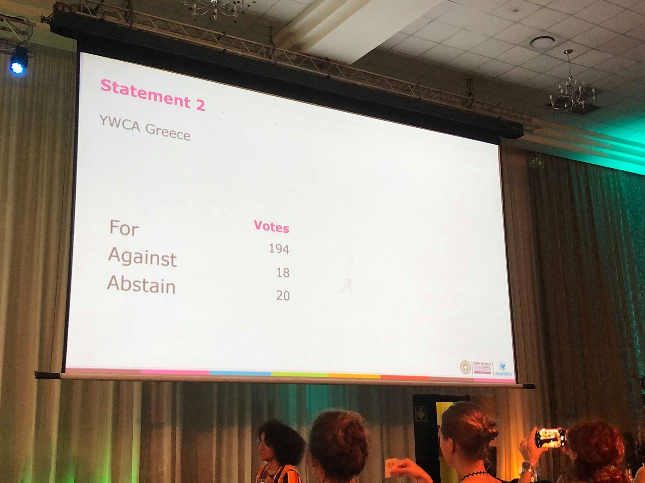 The YWCA-YMCA of Switzerland seconded the motion and it was supported by the YWCAs of Grenada, Bolivia, Albania, Armenia, Great Britain, Malawi, Poland and Puerto Rico. The motion was adopted by the Council with 194 majority votes.