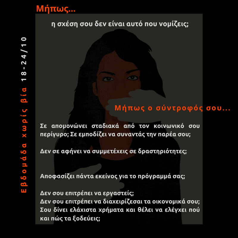 Στόχος της δράσης είναι να ενημερωθούν όλο και περισσότερες γυναίκες για τα πρώτα βήματα που μπορούν να κάνουν, ώστε να σχεδιάσουν μια ασφαλή διαδρομή διαφυγής από κάθε μορφής κακοποιητική σχέση.